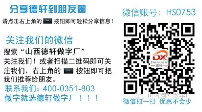 作者:山西德軒做字廠 來源:http://www.sanjly.com 時間:2016-08-17 17:18:39 瀏覽次數(shù):